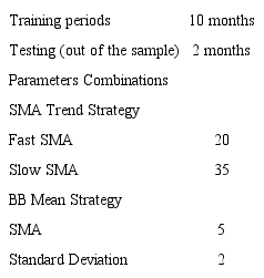 According to (Pardo, 2008), the size of the walk-forward window is based on data availability and data frequency. The longer the training periods, the higher the number of walk-forward, and the reliability of the WFA. Besides, a walk-forward window is proportional to the size of the optimization window. In this case, the optimal window is two months (considering slow SMA, which implies a little more than a month) and uses 10 months of training periods to perform a robust WFA. Table 4 shows the components of WFA.
