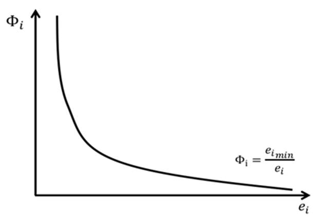 One way to do so, is to assign specific weights to the regional distribution of marginal benefits of public spending. To do so, a policy maker could assign weights according to a Paretian distribution of income in which localities with low income might beassigned a high social weight in the social welfare function (see figure 1). In particular, the policy maker might assign weights that are inversely related to income in the locality. To characterize such possibility, we define therefore represents the lowest income in the economy. The allocation of social weights in the social welfare function of the government motivated by inter-regional equity concerns is given as follows (see figure 1):