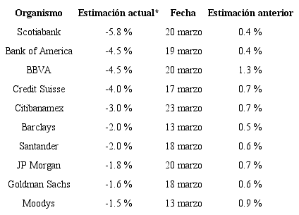 Ante estos hechos, con gran rapidez diversas agencias financieras y bancos comerciales han corregido dramáticamente sus pronósticos de crecimiento de México para 2020, tal como se ve en el cuadro Addendum 1.