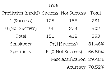 In order to understand the variables which could be most important for ventures to succeed in international markets, a two-stage probit regression model was estimated. The results are shown in Table 5 and 6. In addition, some performance measures of the model can be seen in Appendix A and B.
