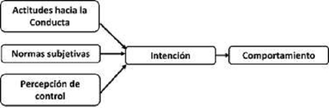 La TCP (Bratman, 1987; Ajzen, 1991) se basa en la Teoría de la Acción Razonada (Theory of reasoned action -TRA), la cual se explica en un modelo de relaciones entre actitudes, convicciones, presión social, intenciones y conducta. En la Figura 1 se representa el modelo teórico de Ajzen (1991).