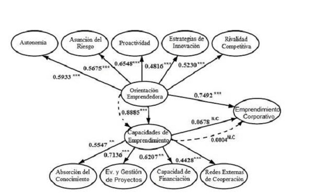 Clasificación JEL: M100, O30, O32, C13, Orientación emprendedora, emprendimiento corporativo, RBV, capacidades de emprendimiento corporativo, absorción de conocimiento, redes externas de cooperación, evaluación y gestión de proyectos.