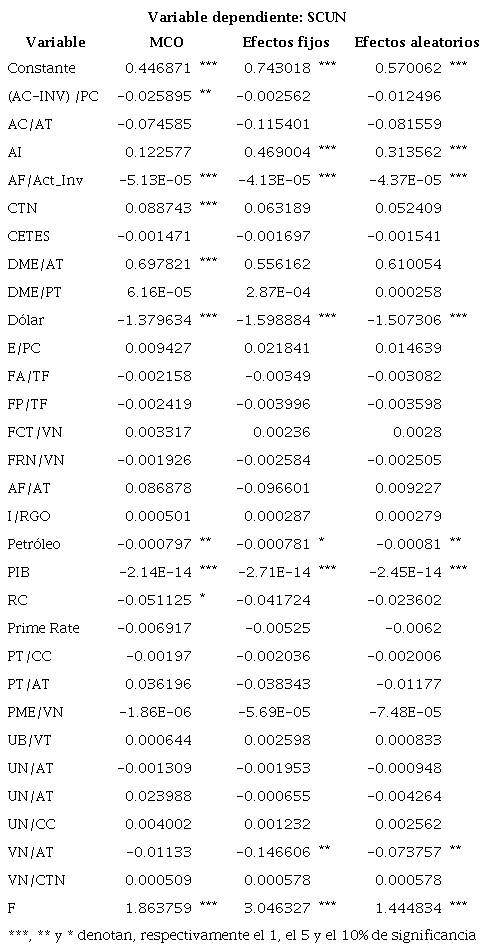 Es importante considerar que las empresas analizadas pueden presentar un alto grado de heterogeneidad, por ejemplo, diferencias causadas por particularidades debido a la escala de las empresas muestreadas, así como atribuibles a los sectores a los que éstas pertenecen, razón por la cual se optó, como lo sugiere la literatura (por ejemplo, Baltagi, 2005), por recurrir a los modelos econométricos para datos organizados en panel.