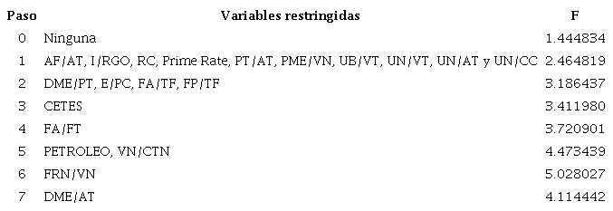 Como variables independientes, se escogieron el PIB, el precio del petróleo, el tipo de cambio peso-dólar, la inversión en activos intangibles y las razones financieras que miden la inversión en inmuebles, planta, equipo y capital de trabajo. Las variables macroeconómicas incluidas son las que frecuentemente han sido analizadas en otros estudios sobre los efectos de balance, como es el artículo de Bonono, Martins y Pinto (2003), y sobre todo los estudios que han incluido variables macroeconómicas en la determinación de la estructura de la deuda de moneda extranjera, entre los que se encuentran Krugman (1999), Chui, Fender y Sushko (2014) y Desai, Foley y Forbes (2007) y Keysriyeli, Özmen y Yigit (2011).