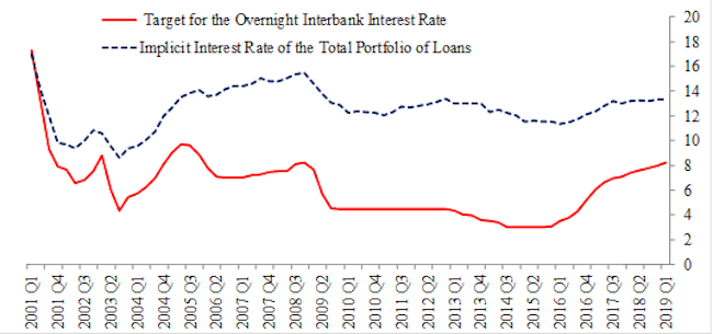 The price elasticity of demand for is , which defines the value of the markup that retail banks charge when setting interest rates and, consequently, the value of the spread between the monetary policy rate and the retail loan rate. Thus, the markup can be defined as