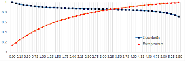 Consequently, after substituting (4) in (5), the first-order conditions of the entrepreneurs are: