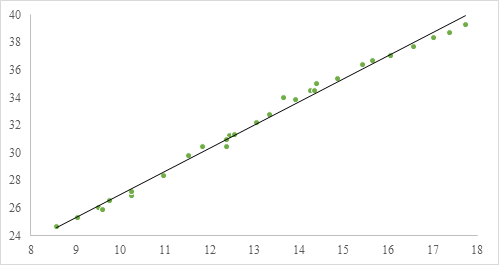 The compilation of the GVA and the capital stock is done from different subaccounts of the System of National Accounts. Following best practices, our statistical institute uses the flow of goods method to compile the GVA and, on the other hand, the perpetual inventory method to assemble the capital stock. Likewise, following the best practices, INEGI computes the quantity of labor in an imputed way, so it correctly labels the series as the “numbers in full-time employment” (“puestos de trabajo”), and then calculates the number of hours worked. The above will also be taken into account when performing the econometric analysis. We observe the strong linear association between the number of jobs and the GVA, as expected, in the following cross-plot.