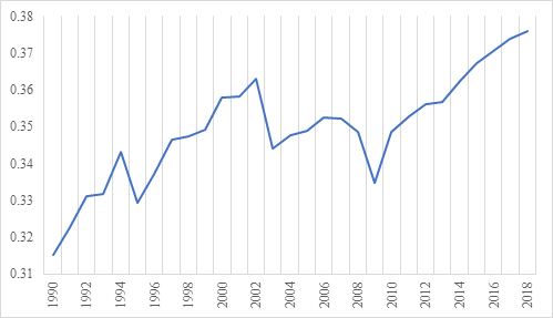 We want to highlight first that, although the most convenient approach is based on the transformation of information from current prices to constant prices (Deflation), both proposed measurements show a similar behavior temporarily speaking. Second, the ratio obtained by deflation registered a shift of three percentage points in 2003, the first reported year of the base at 2013 prices. The above does not surprise us to the extent it occurs when agencies modify the “base year”, but it will necessarily be considered when carrying out the econometric analysis.