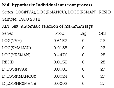 The next step to carry out our simulations was to conduct an econometric analysis taking as an endogenous variable the number of worked hours in the manufacturing sector. According to the aggregate production function, its determinant is, firstly, the stock of capital in use and, secondly, drawing on an economic-statistical sense, its lagging value. The estimation results were as follows: