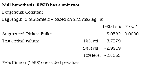 Here is the coefficient. It is expected to be positive −and the larger it is, the better. Its vector autoregressive (VAR) form is the following: