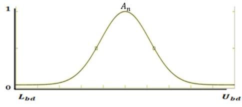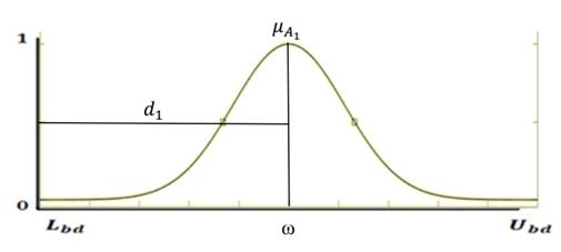 where represents the membership function of the fuzzy set of the parameter , is the center and is the variance. And is the distance where there is 99% of all parameters in this membership function.