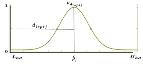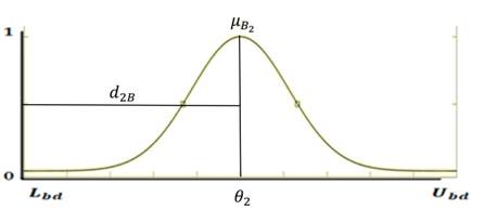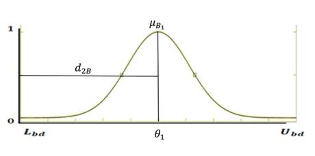 where represents the membership function of the fuzzy set of the parameter , is the center and is the variance. And is the distance where exist the 99% of all parameters in this membership function.