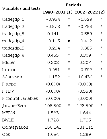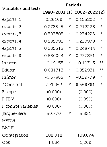 Thirlwall and Pacheco (2008) point out that the difference in the results that trade openness has in some economies is due to the role played by economic policy. In general terms, two factors can be highlighted. First, the transition towards the production of high value-added goods, and second, a certain degree of protectionism that allows the development of domestic industries.