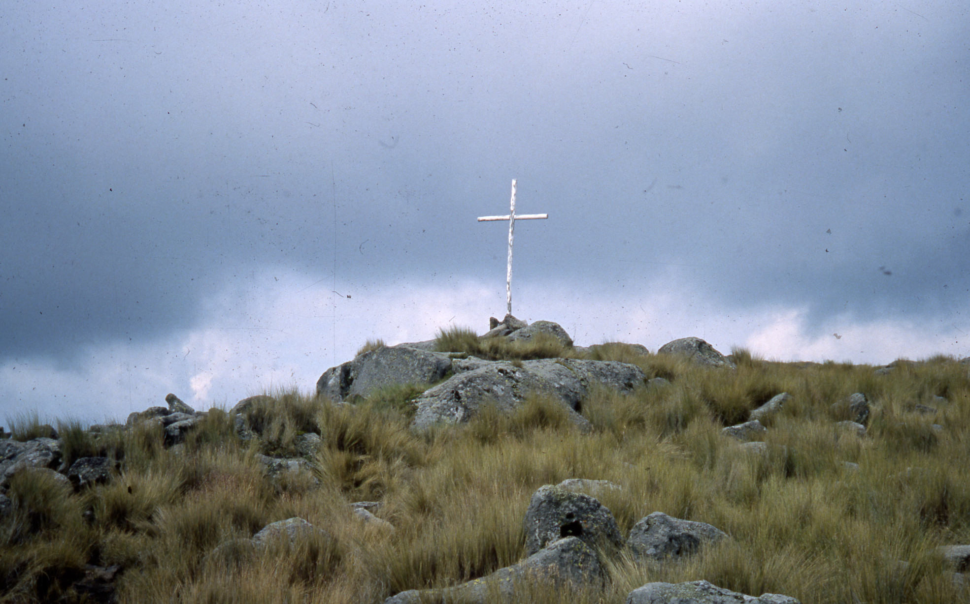 He identificado al Quauhtépetl (“el Cerro del Águila”) con el actual Pico Tres Padres, el punto más conspicuo de la Sierra de Guadalupe. Resulta que hasta el día de hoy varios asentamientos antiguos al pie de la Sierra de Guadalupe conservan el nombre de Cuautepec el Alto, Cuautepec de Madero; San Mateo Cuautepec y Santa María Cuautepec. La cumbre más alta de esta sierra es El Picacho (3 050m) que resulta ser muy empinado e inaccesible (Fig. 17). Por otra parte, el Pico Tres Padres (3 020m) es la cumbre de más fácil acceso, de acuerdo con González Aparicio (1973) su nombre antiguo era Cerro Tontepec. Al subir a este Pico en enero de 1989,20 (Fig. 18) nos percatamos de los restos arqueológicos de algunas edificaciones menores que había en su cumbre (Fig. 19) y que bien pueden haber sido el lugar de los sacrificios mexicas. Las piedras de esta construcción no son del lugar sino deben haber sido transportadas desde alguna cantera al pie de la Sierra. Desde el Pico Tres Padres se tiene una vista panorámica de los valles circundantes, particularmente hacia el Norte, donde se encontraban antaño los lagos de Zumpango y Xaltocan, y a sus orillas los lugares de Tulyehualco, Cuautitlán y Tepozotlán (cfr. Parsons, 1971: 4). En el Quauhtépetl se sacrificaba un niño vestido de color rojo.