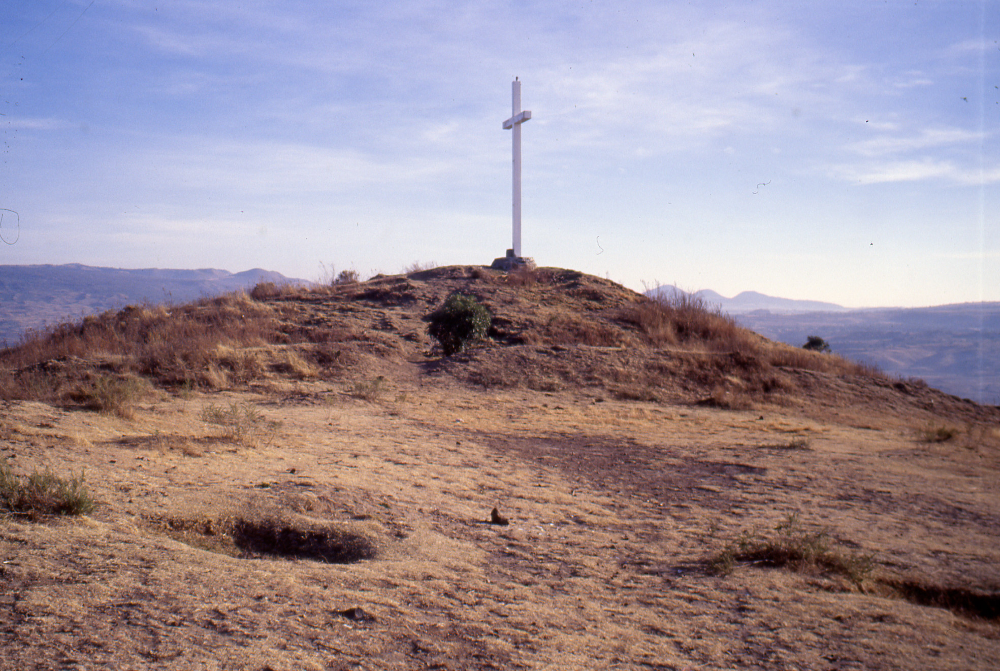 Otro niño que estaba adornado con unos papeles teñidos de negro con unas rayas coloradas, era sacrificado en el Yohualtécatl (“El habitante de la noche”) (Fig. 16.2). Este cerro lleva hoy día el nombre de Cerro El Guerrero. Se ubica atrás de los cerritos del Tepeyac y de Los Gachupines (antes llamado Zacahuitzco). Yohualtécatl forma la estribación sureste de la Sierra de Guadalupe; desde su cumbre se obtiene una magnífica vista en la dirección al este hacia el antiguo lago de Tetzcoco, y sobre el horizonte hacia la Sierra Nevada con el Cerro Tláloc y el Telapón, mientras que en dirección sureste se perciben los grandes volcanes y el Ajusco (Fig. 20). Su amplia cumbre parece haber sido artificialmente aplanada para albergar el santuario mexica, hoy día totalmente destruido. Sin embargo, a pesar de que la cumbre se usaba en los años ochenta como área de cultivo, aún se reconocían en el momento de nuestras visitas en enero de 1988 y en junio de 198921 numerosos montículos y sobre el terreno se apreciaban evidentes concentraciones de tepalcates ceremoniales aztecas, algunos de fina hechura (Figs. 21 y 22). Por su ubicación estratégica y la magnífica vista que permitía hacia la Cuenca, el santuario del Yohualtécatl debe haber sido muy importante. Además, su ubicación lo conectaba con el sitio prehispánico del Tepeyac y del Cerro Zacahuitzco, mientras que otro asentamiento importante, Atzacualco se situaba al pie del Yohualtécatl.22