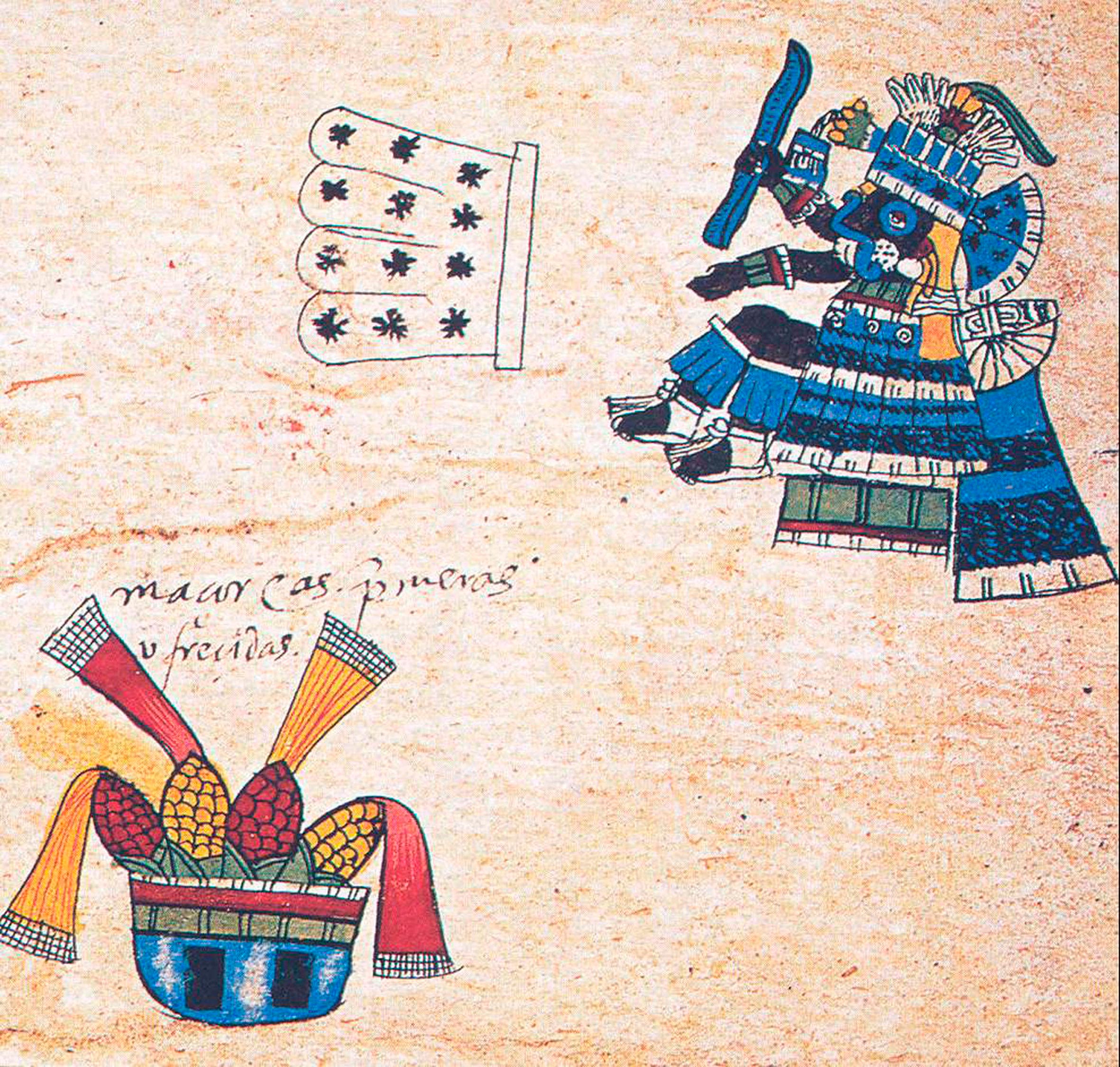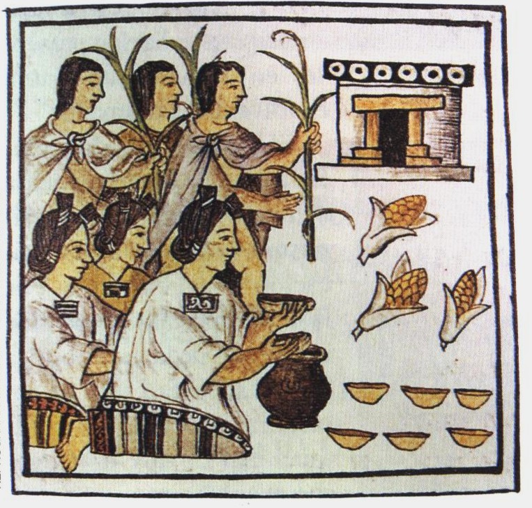 De acuerdo con Sahagún (hg, cf) la fiesta de iv Huey tozoztli estaba dedicada a la diosa de los mantenimientos Chicomecóatl. A ella se hacían ofrendas de cañas verdes de maíz y de ocholli, el maíz para la siembra. (Véanse Figs. 6 y 7). En este mes correspondiente a abril los sacrificios de niños y las peticiones de lluvia llegaban a su fin. Con la caída de las primeras lluvias los campesinos iniciaban la siembra y el ciclo agrícola del maíz.