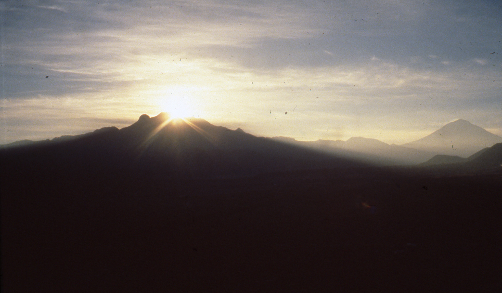 El cerro Cócotl, de fácil acceso, fue convertido por los mexicas en un santuario del culto a la lluvia y a los grandes volcanes, cuya presencia se impone en el lugar. En la cumbre del cerro, artificialmente nivelada, aún se perciben los tenues vestigios del sitio arqueológico mexica (Fig. 23). Allí se sacrificaba en i Atlcahualo un niño adornado con papeles mitad colorados, mitad leonados. El sacrificio tenía lugar a la hora del amanecer, precisamente cuando el sol sale sobre el pecho del Iztaccíhuatl (Fig. 24). Pudimos observar este evento el 12 de febrero de 1998. Durante el mes de febrero, inicio del año mexica, el sol recorre el ancho perfil de esta montaña volviendo nuevamente al mismo horizonte durante el mes de octubre, la veintena mexica de xiiiTepeilhuitl, cuando se festejaba nuevamente a los dioses de la lluvia en su función de personificación de los cerros (cfr. Broda, 2001a: 184, 185).