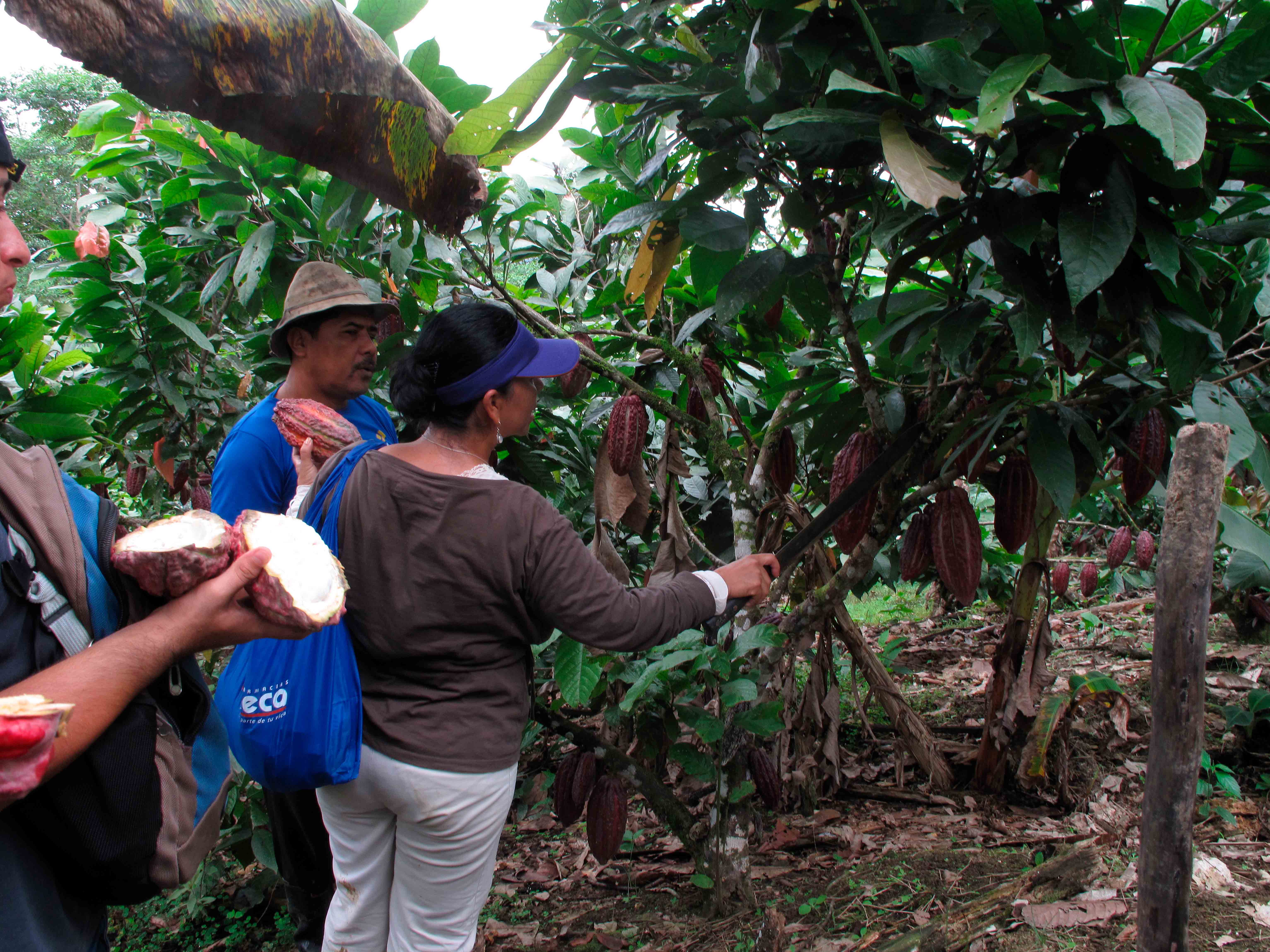 Los pobladores entrevistados en la comunidad de Abdón Calderón, mencionan que no cuentan con programas de apoyo relacionados con la ap, pero han recibido algunas capacitaciones para el cultivo y manejo de variedades mejoradas y criollas de cacao por parte del Ministerio de Agricultura. Sin embargo, la falta de títulos de propiedad les impide acceder a otros apoyos, como el pago de servicios ambientales de Socio Bosque.