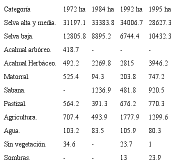 Los datos más recientes sobre la cobertura vegetal de la Rebiso (Tabla 1), muestran que la selva ha disminuido de 1972-1995 y han aumentados los pastizales y agricultura. En un documento del 2013, Conanp menciona que la tasa de deforestación ha pasado de 0.3 a 0.1% en la zona de amortiguamiento y 0.01% en la Zona Núcleo.