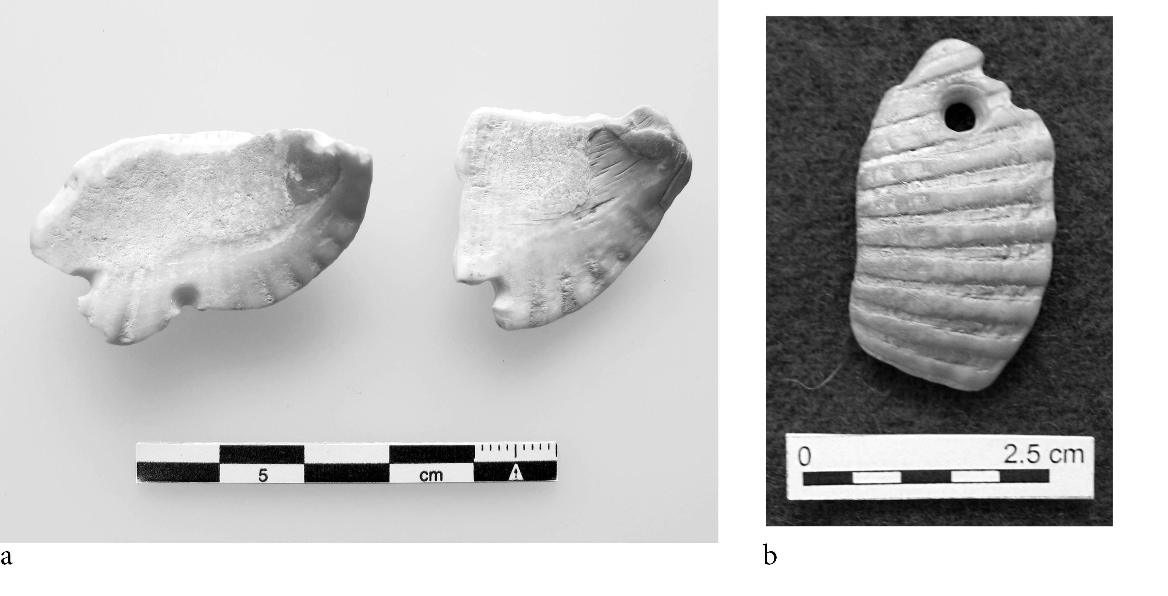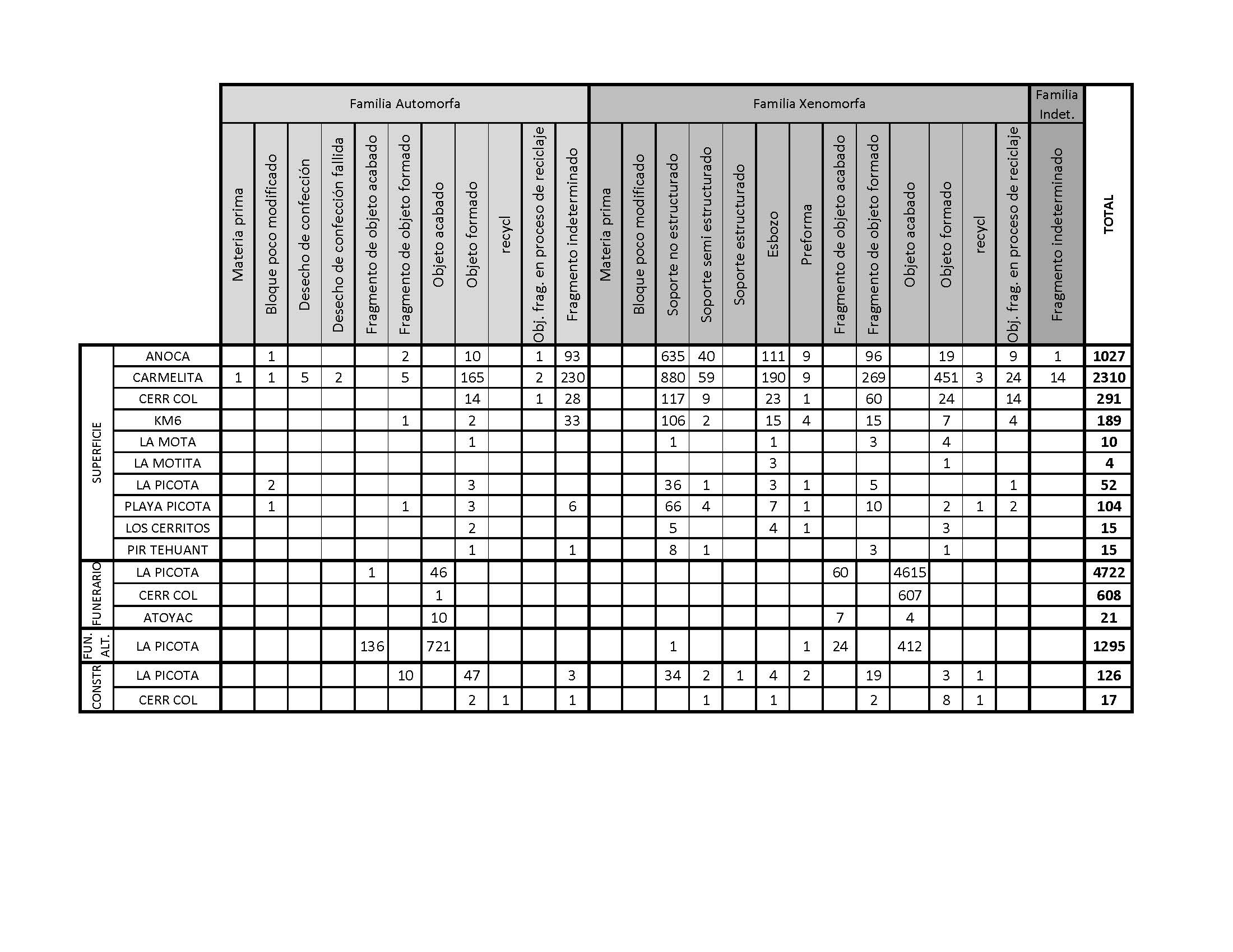 Primero porque pocos sitios han proporcionado una cantidad tan grande de piezas en proceso de trabajo y aunque no se cuente con talleres in situ existen suficientes pruebas para confirmar una actividad de manufactura local de ornamentos de concha y una intensa producción artesanal (Mas, 2018: 374-375) con recurrencia de ciertos comportamientos técnicos y representación en las colecciones de todas las etapas de elaboración (véase la Tabla 2).