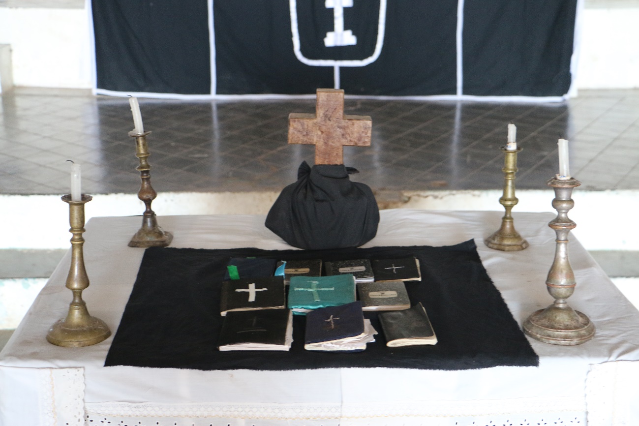 En esta ocasión pude observar que las personas se persignaban al momento de retirar el libreto del baúl y de igual manera al guardarlo. En otra ocasión, cuando todavía no me percataba de esto, se me ocurrió pedir permiso para ver el libreto de uno de los barrios. Era el mes de junio, las personas encargadas se negaron rotundamente, me dijeron que estaba prohibido, que solamente se le podía “sacar” cuando se realizan los ensayos, que volviera para entonces. Y justo es lo que hice, volví en noviembre. Nuevamente pude apreciar cómo se persignaban y le pedían permiso al libreto para extraerlo de ese lugar y para mostrármelo. Una señora se dirigía a él con un gesto de sumo respeto pidiéndole disculpas por desocultarlo, como si el libreto fuera objeto de un culto particular.