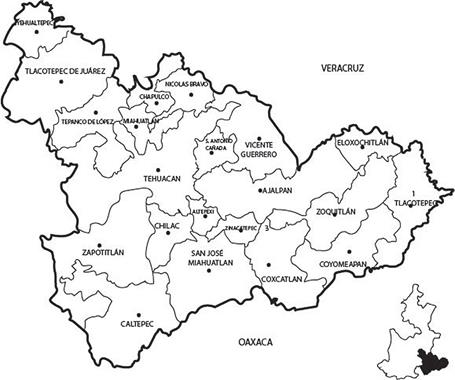 La región sureste del estado de Puebla es conocida como Sierra Negra (véase mapa 1); en esa zona habitan nahuas y mazatecos, pueblos para quienes ser mexicanos es prácticamente un accidente, pues su historia remota nada, o casi nada, tiene que ver con esta denominación. Ser mexicanos es algo que para los nahuas recién llegó: apareció con los programas estatales de desarrollo de los años setenta e, incluso, con los megaproyectos que actualmente amenazan la biodiversidad serrana, ya sea a través de las potenciales hidroeléctricas o de la Nestlé.