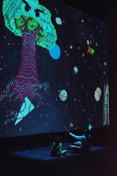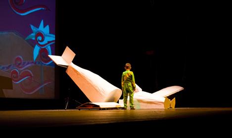 6. Al ser una obra para todo público, pero con especial énfasis en el infantil, se buscó que en escenas como la del capítulo V, concerniente a los baobabs, la obra fuese más interactiva; así que del piso superior se lanzaron globos y hojas que alertaban del peligro de los baobabs.