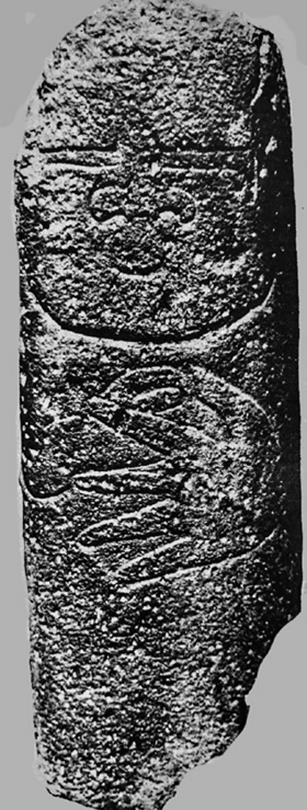 Otro ejemplo que sugiere semejanzas con la pieza escultórica de Almoloya está también incluido en otros estudios de esta investigadora (De la Fuente 1977). Este tiene que ver con los restos de una pilastra (véase fig. 8) caracterizada en palabras de la especialista como «una figura de aspecto humano, en la que sobresalen los característicos rasgos “olmecoides”» (383), aunados a la forma cilíndrica en la que se acentúa ligeramente la división corporal y los rasgos faciales. Esta pieza, al igual que las hachas, comparte con el Ídolo la forma cilíndrica, la postura, la división corporal y el dramatismo de la expresión facial, mismas características que ofrece una muestra recuperada en Guatemala por Carlos Navarrete (véase fig. 9), no obstante la riqueza iconográfica que proporciona esta última en comparación con el Ídolo de Almoloya del Río.