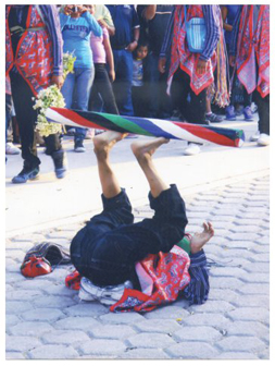 Pour être danseur, le premier des engagements est celui de la manda, ce vœu personnel qui est prononcé de « travailler pour les croix », en échange de quoi l’on espère que la foi et l’effort investi, le sérieux de la promesa (ou huenchihualiztli, promesse, vœu)20 permettront d’être exaucé dans ses souhaits : espérance de guérison, de réussite dans les études et le parcours suivi, vœu personnel ou familial selon les situations. Pour faire face aux moments de crise, de maladies, aux problèmes économiques ou de travail, ils s’engagent dans une relation contractuelle en offrant cette pénitence, cet autosacrifice pour obtenir la réalisation de leurs vœux. Ils s’engagent en même temps à accomplir le rituel de demande de pluie pour leur village. Ce dernier constitue un espace toujours fondamental de collaboration et de construction des collectifs, en procurant un fort sentiment d’identité communautaire.