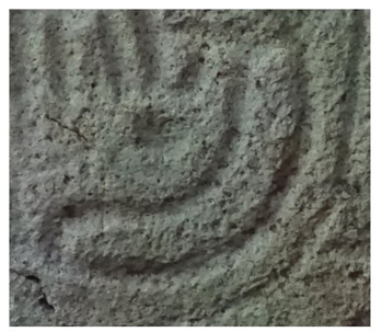 Es posible que el grabado del panel secundario esté inacabado. El acabado del grabado sugiere un cincelado por percusión indirecta, sin raspado por abrasión, ni pulido (véase la fig. 6).