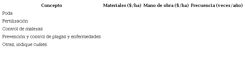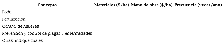 6. Costo anual aproximado por hectárea del manejo del cultivo de la palma datilera, estimado según rango de edad: