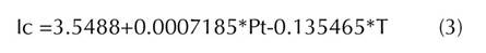 Dónde: Ic es el índice de crecimiento residual de C. alliodora, Pt el monto de precipitación anual y T la temperatura media anual, los coeficientes son significativos para el modelo (p>0.05).