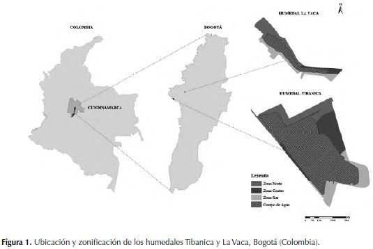 La presente investigación se realizó en dos humedales andinos de planicie, de origen fluviolacustre, ubicados en la sabana de Bogotá (Colombia), por debajo de los 2700 m de altitud, con un espejo múltiple y áreas inundables morfométricamente no uniformes (DAMA, 2006).