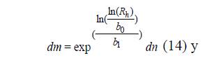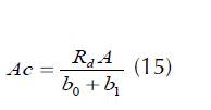 Con la finalidad de ampliar la aplicabilidad de los sistemas generados y poder estimar cualquier diámetro o altura comercial para S. macrophylla, solo se despeja dm de la ecuación 3 y se remplaza por Rh , (14), o de forma opuesta, se despeja Ac de 7 y se remplaza por Rd , (15).