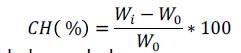 Dónde CH (%) corresponde al contenido de humedad expresado en porcentaje, Wi es el peso inicial de la probeta yW0 es el peso seco o anhidro de la probeta.
