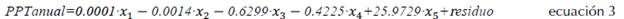 La regresión lineal múltiple de la precipitación anual PPTanual obtenida mediante el modelo Regnie se presenta en la ecuación 3: