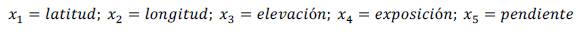 Las cinco variables (k) determinadas por factores geográficos y fisiográficos son: