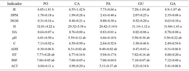 Estudios similares llevados a cabo por Rahmanipour et al. (2014), seleccionaron un CMD de cinco indicadores, partiendo de 10 variables; de manera similar, Yu et al. (2018) formaron un CMD de cuatro indicadores, de un conjunto de datos inicial de 13 propiedades. Nuestros resultados mostraron mayores valores de ICS para PO y CA, caracterizados por llevar a cabo prácticas agroecológicas, incluso con valores similares al GA. Estos resultados se comparan con los de Glover, Reganold y Andrews (2000), quienes evaluaron prácticas de manejo convencional, integrado y orgánico en las propiedades del suelo en huertos de manzanas, encontrando mayores valores de los ICS en sistemas con una labranza mínima. De igual forma, Lima et al. (2013), estudiaron diferentes sistemas de manejo para el arroz (labranza convencional, pregerminado y sin labranza) y encontraron los ICS más bajos en los sistemas convencionales, asociados a una menor actividad biológica.