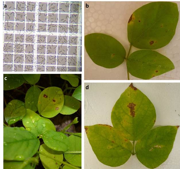 La confirmación de la infección del material seleccionado se efectuó mediante evaluación microscópica de la presencia de conidios y análisis de las regiones ITS de aislamientos provenientes de dos foliolos por cada cobertura con síntomas de antracnosis.