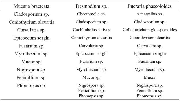 Keywords: antrachnose, Desmodium sp., Hevea brasiliensis, Mucuna bracteata, Pueraria phaseoloides.