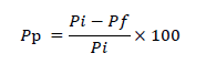 Pp= pérdida de peso (%), Pi= peso seco inicial antes del ensayo (g), Pf= peso seco al final del ensayo (g).