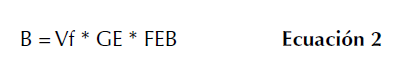 B: biomasa aérea (kg.árbol-1); Vf: volumen de fuste (m3.árbol-1); GE: gravedad específica de la madera (kg.m-3); FEB: factor de expansión de biomasa.