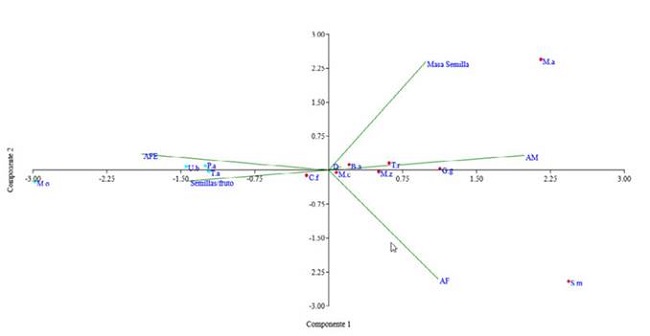 Posteriormente, se llevó a cabo un dendrograma con el método de análisis jerárquico de Ward y distancias euclidianas para caracterizar los tipos funcionales de las especies más importantes. En seguida, se aplicó un análisis PERMANOVA, debido a que los datos no se distribuían normalmente, para evaluar la significancia de la diferencia entre estos grupos funcionales. Y, finalmente, se realizó un análisis de componentes principales (PCA) para observar la separación entre los grupos y los caracteres que mayormente incidían en la separación observada.