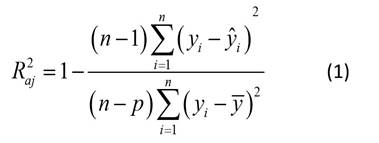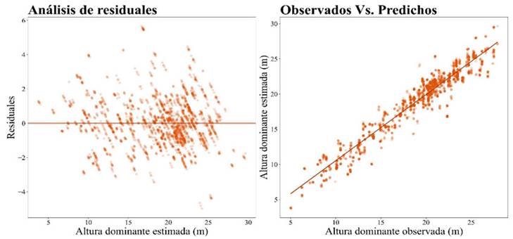 donde yi es la altura dominante observada, ŷi es la altura dominante predicha, ȳ es la altura dominante media, n es el número de observaciones y p es el número de parámetros del modelo.