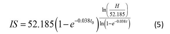 donde t0 hace referencia a la edad base o edad clave (10 años) y H y t son la altura dominante y edad del rodal.