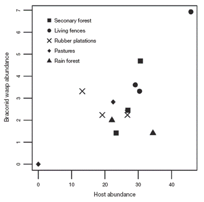 Relationship between Braconid wasp abundance and adult host abundance