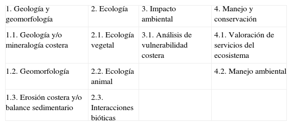 Palabras clave: Estado del conocimientoEstado del conocimiento,Ecosistemas costerosEcosistemas costeros,Estudios de paísEstudios de país,Biodiversidad costeraBiodiversidad costera.