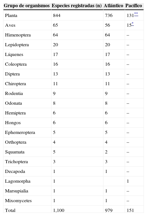 En resumen, se han registrado alrededor de 166 especies de animales en las DC del litoral mexicano (tabla 3). Las aves son el grupo de animales más representado, especialmente aves acuáticas y playeras (65 especies), principalmente en las costas del Pacífico norte y golfo de California. En las costas del Atlántico la fauna de DC que ha sido estudiada es la que se analiza en trabajos de interacciones ecológicas, especialmente aves frugívoras y lepidópteros polinizadores asociados con la vegetación de dunas estabilizadas (ver sección de interacciones bióticas).