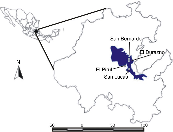 La Reserva de la Biosfera Barranca de Metztitlán se ubica en el estado de Hidalgo, México (fig. 1), entre los paralelos 98°23'00" y 98°57'08" O y 20°14'15" y 20°45'26" N, con elevaciones entre los 1,000 y 2,300 m snm. El área tiene clima estepario, con temperatura promedio anual de 20.2 °C y precipitación pluvial de 437 mm por año. El periodo de lluvias es de junio a septiembre. La vegetación es, principalmente, matorral espinoso (Arzate, 2009; Ortiz, 1980; Rocha et al., 2005; Sánchez, 1978).