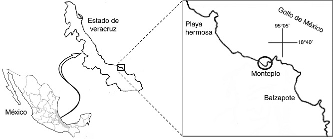 Los nudibranquios aeolídidos presentan coloraciones aposemáticas o de camuflaje, en el dorso tienen prolongaciones del aparato digestivo, denominadas ceratos, en donde conservan los nematocistos que obtienen de los cnidarios, de los cuales se alimentan (Rudman y Willan, 1998). A través de muestreos realizados en la playa rocosa de Montepío, Veracruz, México (fig. 1), en octubre y noviembre de 2012, se registran por primera vez a los aeolidáceos Berghia rissodominguezi (B. rissodominguezi) para México y Phidiana lynceus (P. lynceus) para el estado de Veracruz. Los ejemplares recolectados fueron anestesiados con cloruro de magnesio y, posteriormente transferidos a etanol al 70% para su depósito en la Colección Nacional de Moluscos (CNMO) del Instituto de Biología de la Universidad Nacional Autónoma de México (UNAM).